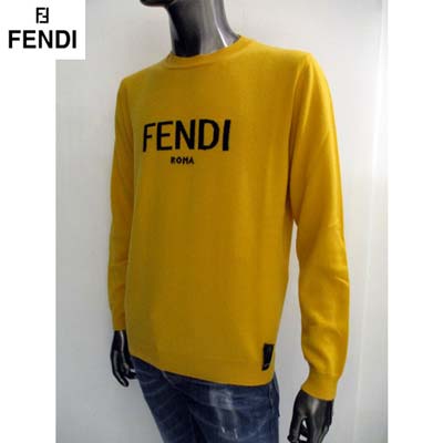 フェンディ FENDI メンズ トップス セーター ニット フロントロゴ・裾部分ロゴタグ付きカシミヤ100%クルーネックセーター イエロー FZY130 AE3W F143O (R151800) GB02A 2020年秋冬新作【送料無料】 【smtb-TK】