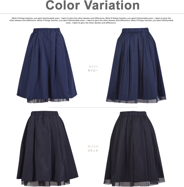 【メール便可】チュールスカート/スカート リバーシブル レース チュール チュールスカート ひざ丈 ミモレ丈 ウエストゴム 黒 ブラック ネイビー レディース ボトムス