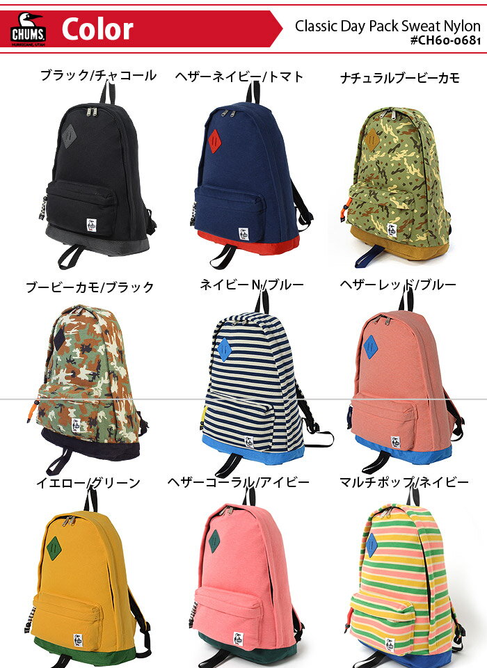 チャムス リュック CHUMS チャムス リュックサック クラシックデイパック スウェットナイロン ch60-0681 かわいい メンズ レディース 大人 通学 高校生 送料無料 ポイント2倍